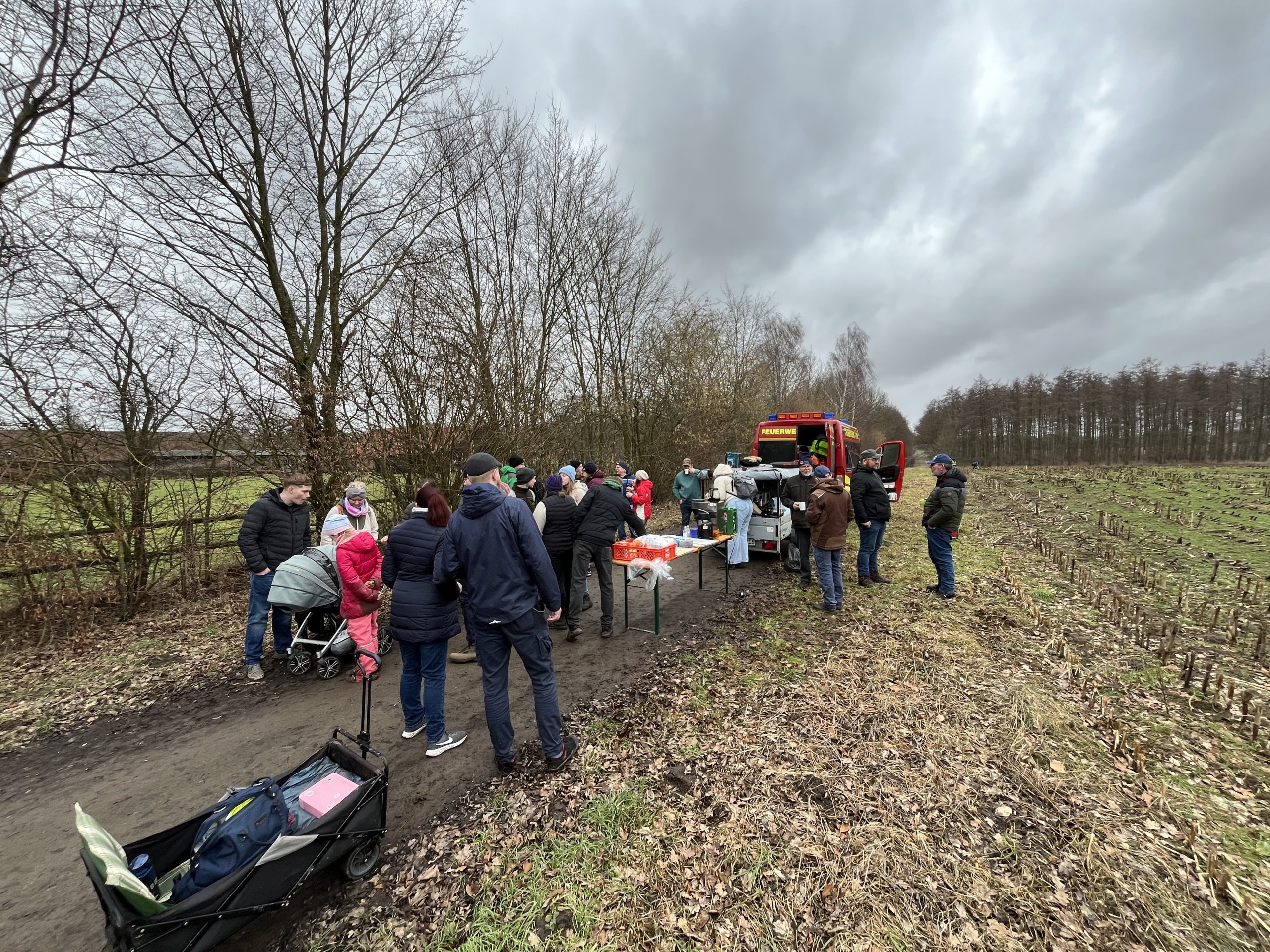 Unsere Ortsfeuerwehr hat sich mit Groß und Klein wieder zur traditionellen Winterwanderung aufgemacht. Das nicht allerbeste Wetter konnte uns nicht abschrecken und so trafen wir uns in der Mittagszeit zum Knippessen am Wilhelmsturm. Frisch gestärkt traten wir den rund zehn Kilometer langen Weg über Wölpinghausen und der Münchehäger Feldmark in Richtung Feuerwehrhaus an. Zwischendurch konnten wir uns über kleine Pausen freuen.
