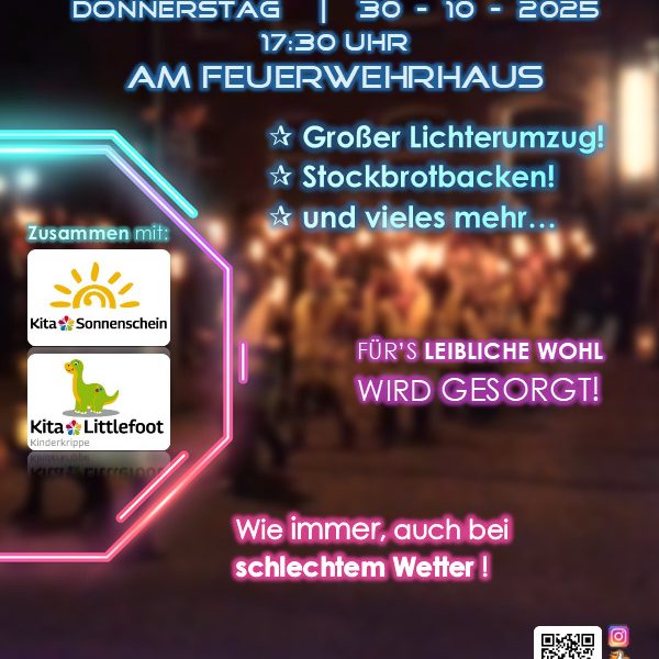Es ist wieder soweit…auch dieses Jahr möchten wir gemeinsam mit Euch Laterne gehen! Dazu laden wir Euch am 30.10. um 17:30 Uhr